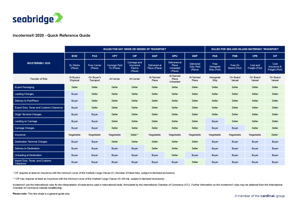 Download Seabridge’s Incoterms® 2020 – Quick Reference Guide