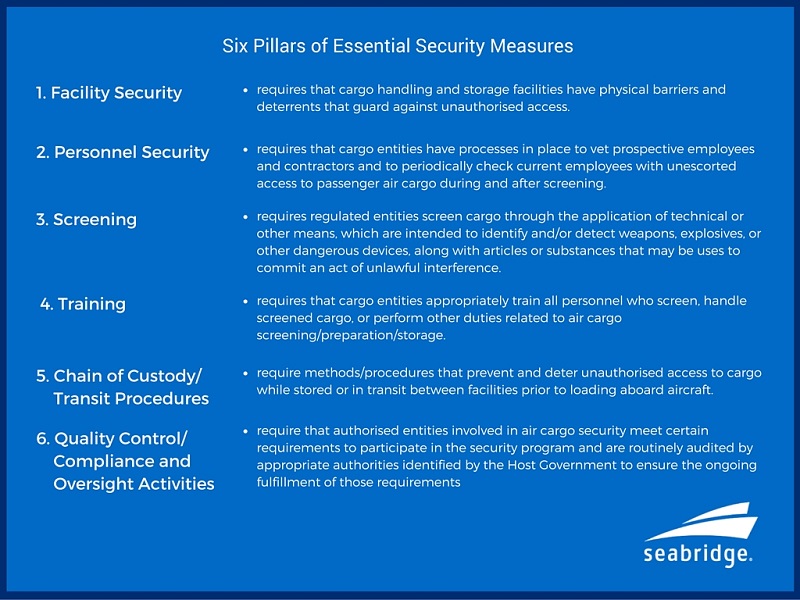 - The Security Program will be based on the International Civil Aviation Organisation (ICAO) six pillars of essential security measures for industry participants.